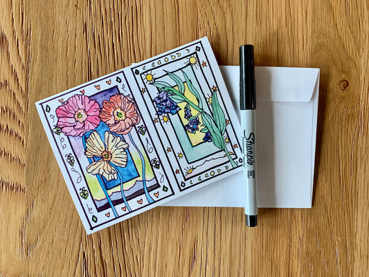 Folk Art Framed Wildflower greeting card