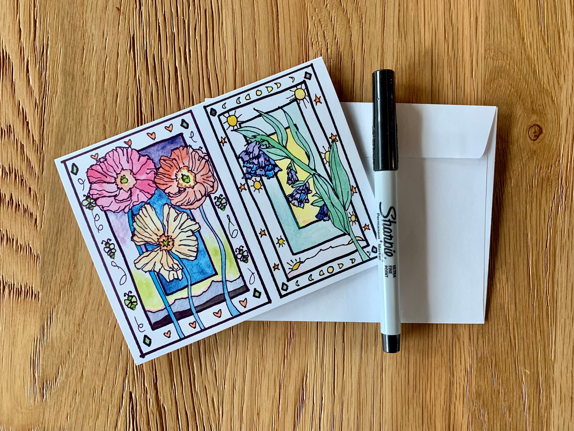 Send someone a sweet note! Wildflowers framed in "folk art" style.